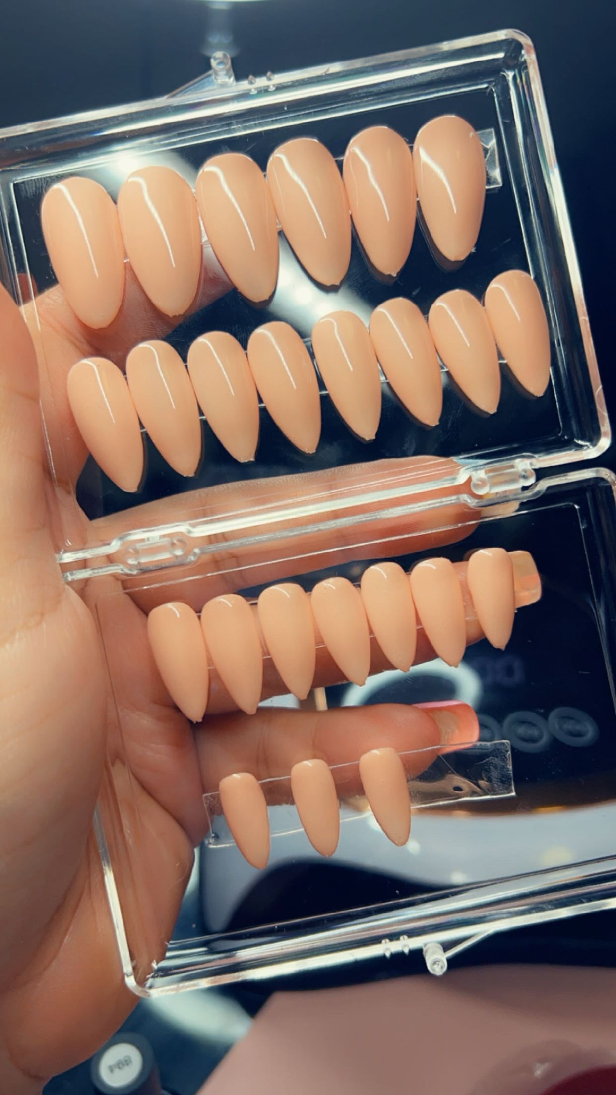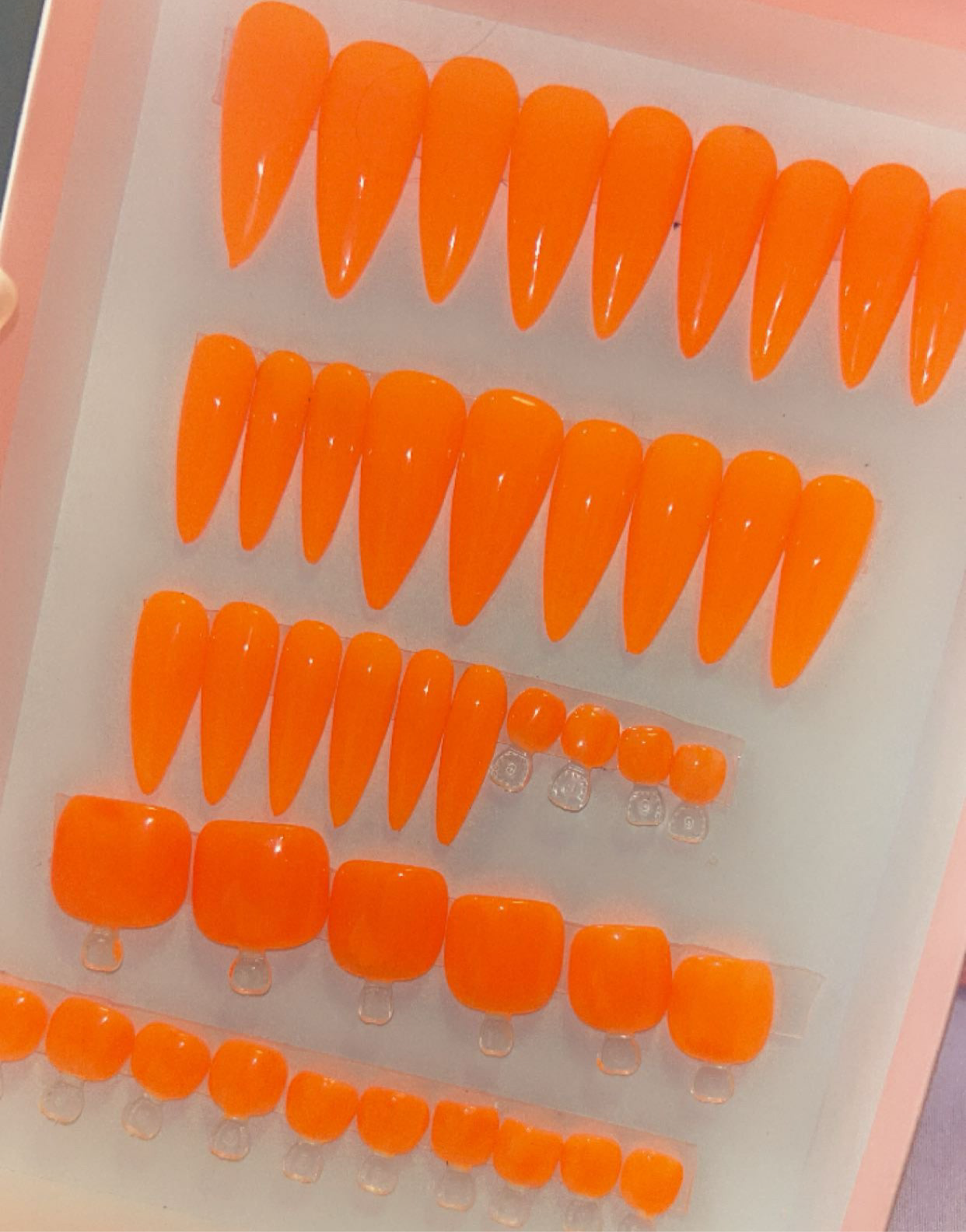 "Get ready to show off your style with Solid Color Nails! These 24pcs nails come in any shape and length you want, and are perfect for your everyday look. Made with gel products, they won't bend or break, and are reusable for endless use. Choose from a variety of colors to match your unique style. No sizing needed, just pick and stick. 💅"
